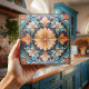 Bring a touch of global elegance to your space with this stunning floral pattern in shades of blue, apricot and red, inspired by traditional Moroccan and Mediterranean tiles. The intricate ceramic tile design showcases symmetrical shapes and ornate details, evoking the rich history and artistic craftsmanship of these regions. Whether used in home decor, party supplies, or personalised gifts, this pattern adds a sophisticated, worldly charm. The design is part of an exclusive collection, perfect for anyone looking to infuse their home or events with timeless beauty. Search ID1078 to see other products in this unique design set. Note: design adapted from generative content.
