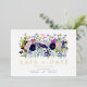 Stunning hand painted watercolor wildflowers and foliage in blush blue, cornflower blue, navy blue, purple, pink, yellow and green hues, ideal for a unique save the date for a spring or summer wedding. Elegant modern typography script in gold foil and navy blue complements the whimsical boho beautiful artwork which includes cornflowers, poppy, cosmos, forget me nots, daisy, billy button and delicate foliage. Chic bohemian wedding save the date invitations perfect for a spring meadow, summer garden wedding. Original artwork by artist Catherine Sweetman