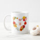 Cute monogrammed colourful floral wreath over white background. Customisable mug template