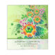 Colourful floral arraignment template with optional customisable text. Orange and purple flowers with green foliage and swirls background. Available on other products. Custom and optional text/info.