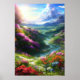 Experience the beauty of nature with this stunning digital artwork featuring a lush valley filled with green grass and colourful flowers. A lazy stream flows through the centre, adding to the peaceful ambiance, while magnificent mountains tower in the distance. Take in the vibrant colours and natural beauty of this picturesque scene, brought to life with digital art. Perfect for anyone who loves nature, landscapes, or just wants to escape into a serene world of beauty.