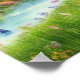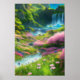 Colourful Flowers and Waterfall in a Green Valley Poster