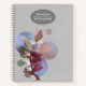 Floral illustration of flowers in pink, purple, and green. Square spiral notebook printed with arrangements of hand-drawn flowers in purple coral, light pink, and white. Add your name and the subject of the notebook in white letters.