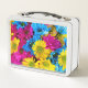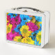 Colourful Flowers, Daisies - Blue Yellow Pink Metal Lunch Box