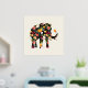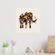 Decorate your home or office wall with this gold or silver foil poster—a colourful watercolors flower elephant illustration with a beige background.
