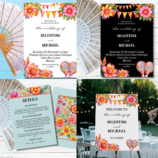 Celebrate your special day with our beautifully designed personalised Mexican Wedding Program Hand Fan, perfect for a vibrant and joyful fiesta wedding celebration. Featuring colourful pink and orange flowers with matching bunting flags against a crisp white background, this fan adds a festive and elegant touch to your ceremony. Adorned with floral patterned pink and blue maracas, each hand fan is a charming blend of tradition and style, ideal for keeping guests cool while sharing your wedding details. A perfect keepsake for your guests, this wedding program fan captures the spirit of your Mexican Wedding with warmth and colour.
