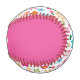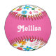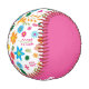 Pretty girly baseball, with graphics of a colourful flower pattern against a white background, and the middle section of the ball is done in a bright solid pink. Personalise the white text to read what you want. Makes a great gift idea for the sporty girl.