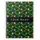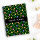 Colourful Flowers, Green Background, Black Notebook