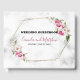 Modern gold frame and pink flowers on light grey marble stone texture
