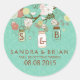 Elegant mint green background with brown and green retro floral design with hanging mason jars. Wedding design sticker template for Save The Date. It comes in several different background colour. If you need any help customising any of ArtOnWear designs, contact ArtOnWear designer by clicking on-Ask this Designer- button. Button is right under product image and information. Free text formatting with live help available by request.