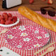 Multicolored ,red and white , flowers, polka dots , sixties , decor , retro, red , white , yellow , floral , children's , simple , minimalistic