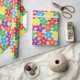 A wrapping paper with colourful flowers on a light blue background. You can customise the size of the flowers and the background colour in an easy way.