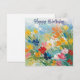 A very pretty birthday card with a floral design in a whimsical watercolor style. The colourful flowers make this an ideal card for garden lovers. The greeting 'Happy Birthday' is at the top of the design in script typography. The reverse side of the card is plain white for your own individual message.