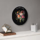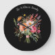 Add this pretty clock to the wall for rustic elegance and floral style. The clock is illustrated with a hand-tied bouquet of fresh summer flowers, on a contrasting black background. The clock can be personalised with a name or other text of your choice, in elegant script typography. An ideal gift for kitchen and home in country farmhouse style.