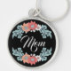 Stylised flowers in peach, white and teal with Mum text key chain.