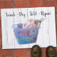 This design features a photograph of a blue basket full of colourful folded clothes on hangers and a detergent bottle and template text with a rustic white wood background. Great for the laundry / utility room. Personalise the text, remove the text or click customise to select a font style, size, and colour you prefer.