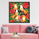 Colourful folk art illustration. Nature scene with 2 birds inside lush flowers and foliage See more abstract art from Zazzle market place place.