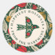 Colourful Folk Floral Bird Christmas Holiday Name Classic Round Sticker