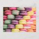 These sweet French meringue-based confections are filled with a tasty centre to create a deliciously sweet cookie sandwich. This stacked rainbow of colours signifies different flavour treats! Colourful Cute French Macaron Cookies Postcard