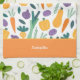 Colourful Fresh Vegetable Pattern with Name Orange Tea Towel