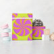 Big peppermint twist candy shape pattern in a fuchsia hot pink and mango orange on a bright pear green background. Modern. Bold. Bright and Merry. This fun Christmas gift wrap blends tradition with modern maximalism. A unique vibrant style for your Christmas and Holiday gifts.