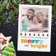 Bring a hilarious twist to the festive season with our Funny Retro Merry & Bright Modern Colourful Christmas Card. Featuring a single photo option to showcase your favourite family moment, this card comes in a modern yet retro black and white design. Add an extra layer of fun to your holiday wishes with a personalised front that showcases your family name and year. Designed to bring laughter and joy, it perfectly embraces the beautiful chaos that is family life. On the back, there's room for a custom message, allowing you to share your heartfelt holiday wishes or humour-filled sentiments. This flat Christmas card, with its high-quality print, ensures your family's delightful shenanigans stand out this holiday season! Designed by Simple Desert Designs Studio.