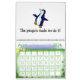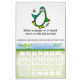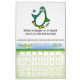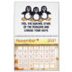 Funny Penguin Calendar. Each page has a different graphic image / cartoon art drawing of penguins with funny sayings / quips in different colours. Guaranteed to put a smile on your face and make you laugh each month of the year. A Penguin lover's calendar that will bring joy all year round. Add the year that you want to use it for.