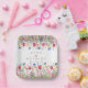 The Colourful Garden Boho Wildflowers wedding paper plate is adorned with lively wildflower illustrations in shades of pink, blue, and yellow, creating a colourful and picturesque garden setting. To personalise this further, click the "customise further" link and utilise our design tool to adjust this template according to your preferences.