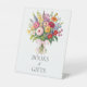 Colourful Garden Flowers Pink Bow Baby Shower Gift Pedestal Sign