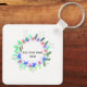 The key chain is made of metal and really sturdy. The flower design is really cheerful. The logo and colors are clear and crisp!