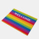 Colourful and gay, stripes of pride. Welcome doormat. Custom background and text background.