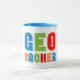 Geocacher directional arrows in colourful text is a humourous geocaching design for geocachers at birthdays, holidays and geocaching events.