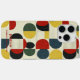 This vibrant phone case features a colourful geometric design inspired by mid-century modern aesthetics. The bold arrangement of circles in red, yellow, green, and navy adds a playful yet sophisticated touch. Perfect for retro design lovers and those seeking a unique and artistic phone cover.