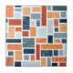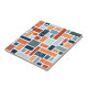 Abstract Mid Century style design with orange, red, blue, light blue, turquoise, mustard colour and navy blue square and rectangle shapes decoration on white background