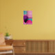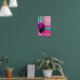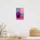This colourful unframed poster features geometric circles and shapes in shades of pink, turquoise, purple and black with several thin black lines. This minimalist print will add a pop of colour to any minimalist or modern room. Choose from a variety of print sizes that fit economical standard frames for an inexpensive way to create a stylish room.
