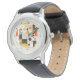 The leather band makes it seem like an “older kids” watch. Easy to read the time. Clear printing and image.