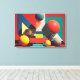 Colourful Geometric Shapes on Red Background Canvas Print