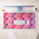 Trendy desk mat with geometric pink, orange, magenta, coral and purple triangles.