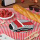 Colourful geometrical design illustration in Scandinavian style with grey, red, white and black colours
