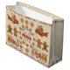 This fully customisable gift bag printed with colourful gingerbread steam trains cartoons, aeroplanes, cute dancing gingerbread boys and girls makes the ideal wrapping for any Christmas gift. Personalise it on both sides with your own texts and surprise someone special with your originality!
