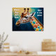 Colourful Giraffe on Blue for Young Animal Lovers Poster