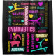 Colourful Girls Gymnastics Glossary Typography design that is loaded with bright colour, delightful fonts, gymnast silhouettes on floor, balance beam, vault and bars. Features many common gymnastics words every gymnast will be familiar with. Also includes tiny doodle hearts, flowers and other small details to keep this design bursting with delight all over!