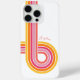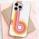 A bright pop of colour in groovy curved stripes adds a happy upbeat look to your smartphone. Girly vibrant colours include bright yellow, orange, hot pink, medium pink and coral on a white background. Personalise the text template with your name for a case that is uniquely you!