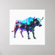 Colourful Glass Bull Digital Art – Vibrant Neon 3D Canvas Print