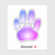 A shiny, transparent dog paw print made of glass. All digital image that reproduces the texture of glass. Custom vinyl stickers. Gift idea.