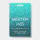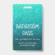 Turquoise blue metallic faux glitter sparkles behind an easy to read and update bathroom hall pass. Update the text to show the teacher and school name, as well as the purpose of the badge. Available in many other sparkly colours and designs.