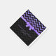 Monogrammed elegant colourful glitter in blue and purple tones with black chevron.