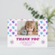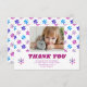 Colourful Glitter Flowers Birthday Girl Photo Thank You Card. Cute pink birthday thank you card for your friends and family. Upload your photo and personalise the card with your name and text. The card has colourful faux glitter flower pattern. Great as thank you card for girls.