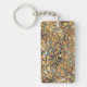 Stylish keychain featuring photography of golden glitter with colourful glassy pieces sprinkled over black background