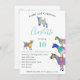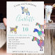 A collection of colourful, cute goats in vibrant pink, purple, blue, orange, yellow and aqua. A cute farm animals 10th birthday party invitation with baby goats and goats standing on goats. This fun party invitation is easy to personalised to create a unique party invitation suitable for children and adult goat lovers. Colourful psychedelic goat original illustrations by artist Catherine Sweetman